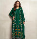 This silk outfit is enhanced with embroidery all over the shirt with combination of sea green paired with straight pants.